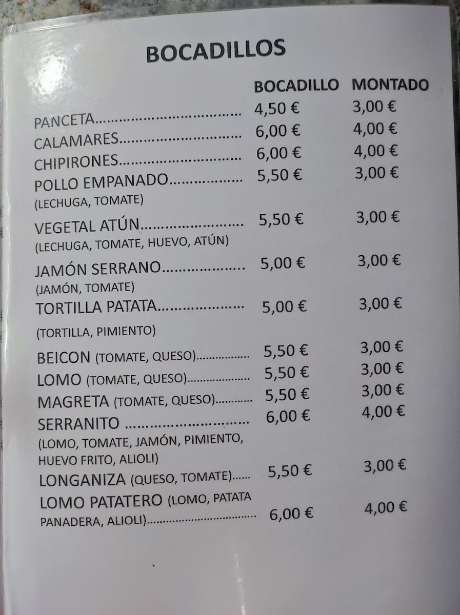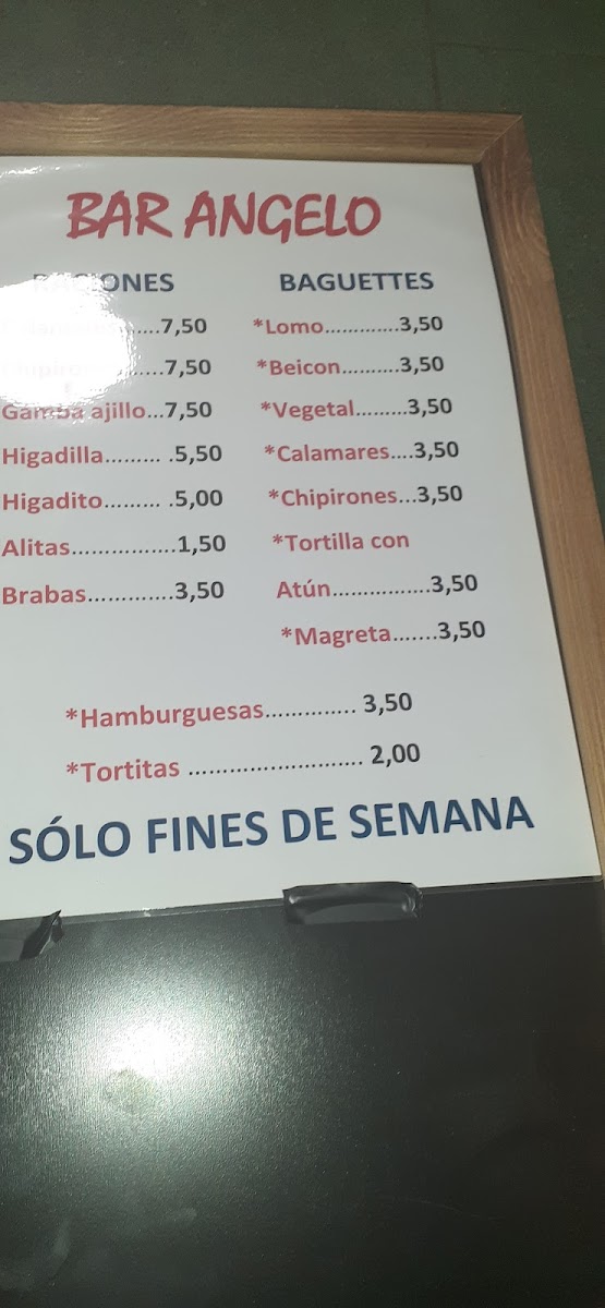 Cafetería Bar Angelo Menu